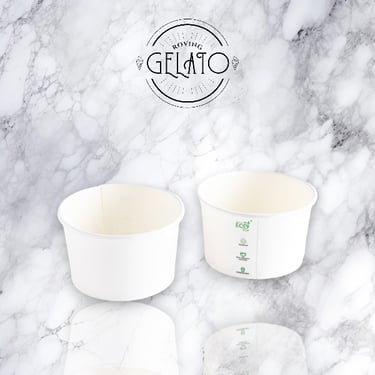 Sustainable & Environmentally Friendly All our cups and spoons are lined with an aqueous water-based coating to allow cups to be compostable, pick a pastel or plain white! or ask us about custom labels. The paper gelato spoons enhance the enjoyment of eating gelato. A unique manufacturing process makes the paper gelato spoons rigid and water-repellent. Manufactured with food 9-ply paper technology that is food-grade paper and FSC-certified.