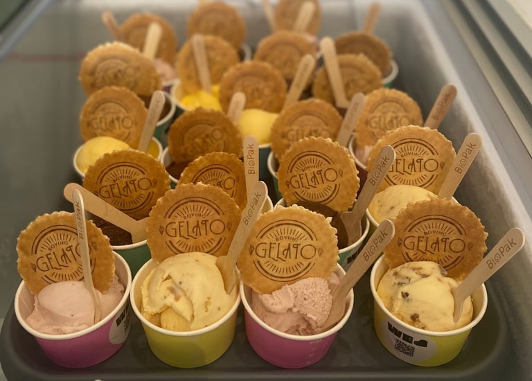 Delicious Treats: Our gelato is a crowd-pleaser! From classic favorites like rich chocolate and refreshing mint choc chip to dairy free sorbets, we’ve got something for everyone. Your colleagues will savor every spoonful.