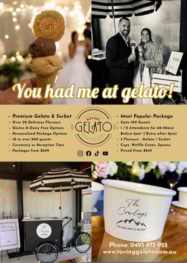 Unique Gelato Experience: Our eye-catching gelato carts add a touch of elegance and excitement.