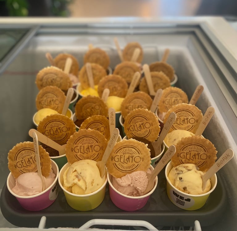 Delicious Treats: Our gelato is a crowd-pleaser! From classic favorites like rich chocolate and refreshing mint choc chip to dairy free sorbets, we’ve got something for everyone. Your colleagues will savor every spoonful.